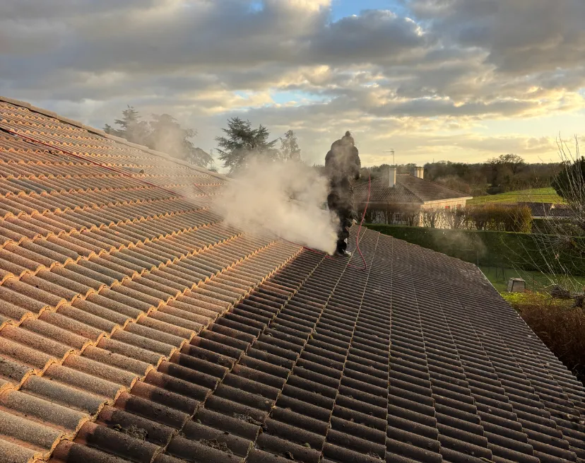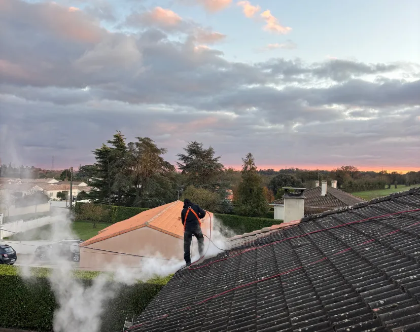 Nettoyage à la vapeur basse pression, sans produits agressifs, pour traiter en profondeur mousses, algues, lichens et dépôts de pollution. Une solution écologique et maîtrisée.